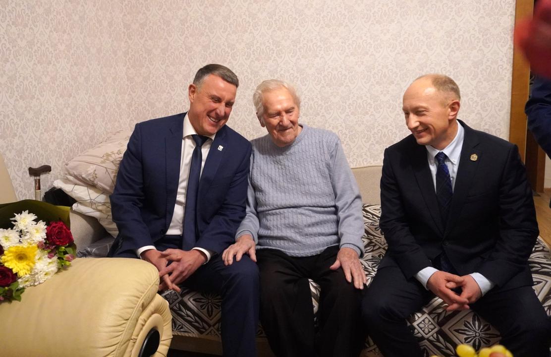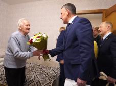 Юбиляра поздравили, пожелали здоровья на долгие годы, вручили букет цветов и подарок Первый заместитель Губернатора Новгородской области Евгений Богданов и мэр Великого Новгорода Александр Розбаум. Николаю Васильевичу передали именную поздравительную открытку от Президента Российской Федерации Владимира Путина.
